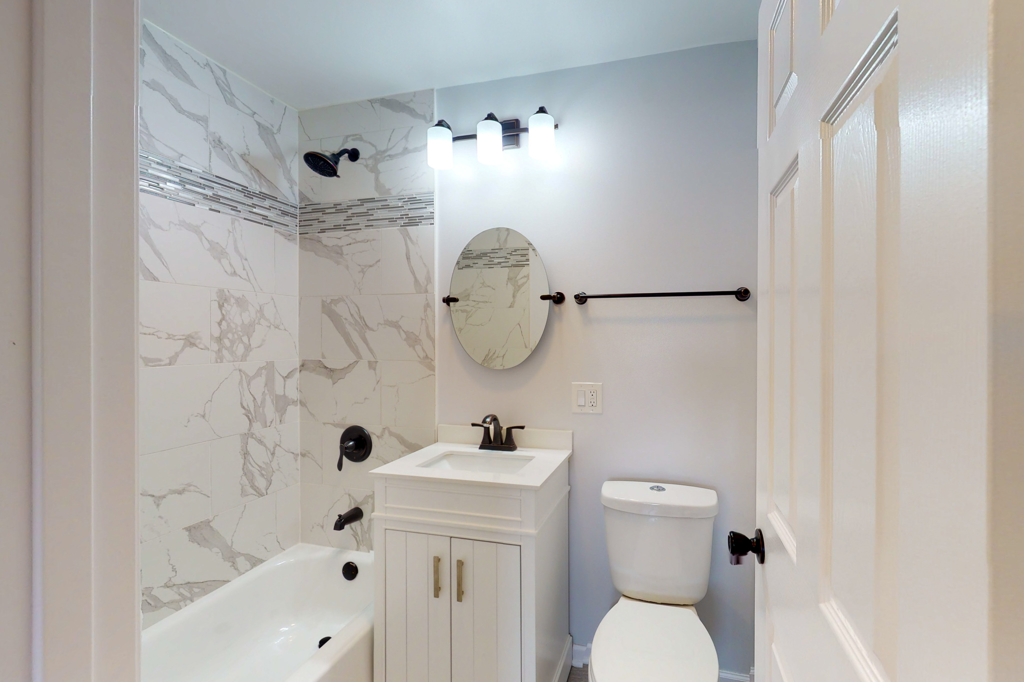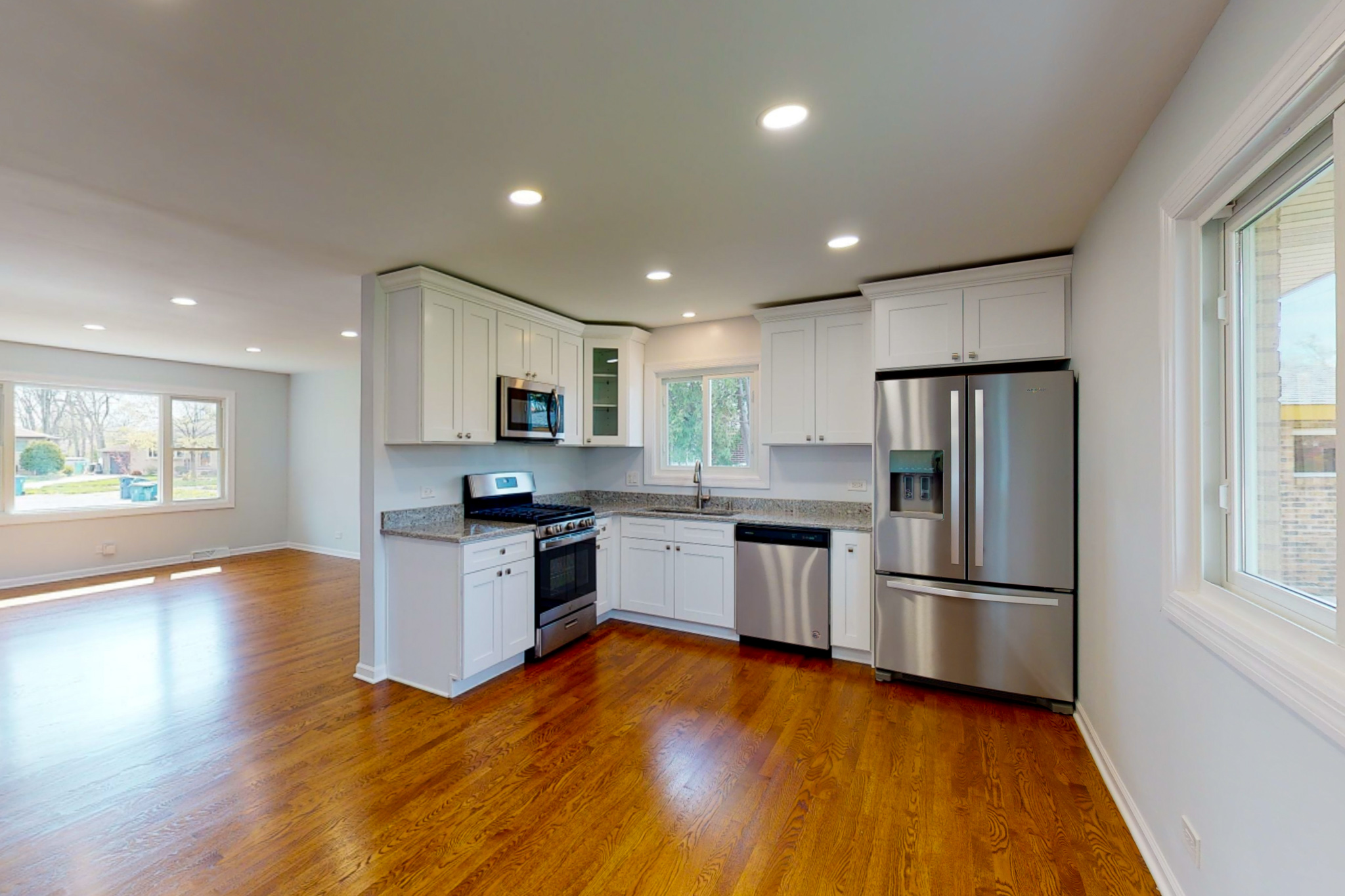 Almost too amazing to describe. COMPLETELY REHABBED, all brick ranch with gleaming hardwood floors on the main level, and custom epoxy flooring below that will last a lifetime. Approximately 2200 square feet of finished living space. Enter the large living room, complete with new can lighting, that opens to the beautiful new eat-in kitchen with shaker cabinets, granite counters, and all stainless steel appliances. Three good sized bedrooms, and two new baths complete the main level. Custom stairs lead to the HUGE family room/entertainment room in the basement, that also has a new 1/2 bath for convenience. Separate space that can be used as a bedroom, office, or workout area. All new windows throughout, as well as trim, doors, plumbing fixtures, electric panel, AND the roof. Huge two car garage. Literally, nothing to do but move in and enjoy. Also, all work done with complete permits.